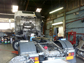伊井運輸では、毎日重い荷物を運んで走っている大型トラックの車検業務を行っています。